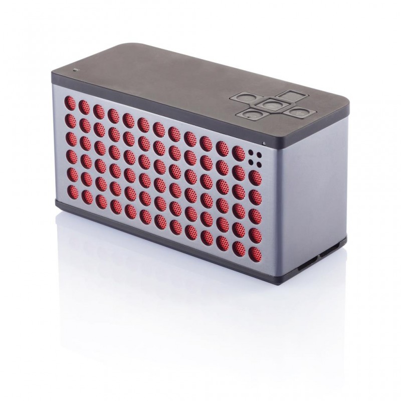 Bluetooth reproduktor s výkonnou 1200 mAh baterií a výkonem 2x 3W posune hudební zážitek o stupeň výše. Tělo je vyrobené z hliníku s ABS mřížkou, spodní strana je kompletně pogumovaná pro zajíštění co nejlepší kvality zvuku. Reproduktor je kompatibilní s nejnovější NFC technologií.