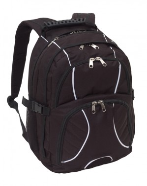Praktický batoh se spoustou propracovaných detailů. 2 přední kapsy na zip, jedna s integrovaným organizérem na drobnosti, 2 hlavní přihrádky jedna s vypolstrovanou kapsou na notebook a druhou na dlaší zařízení s dírkou na sluchátka, 1 kapsou na zip na klíče, 2 síťové kapsy a stahovací pásky na bocích, zesílené držadlo a vypolstrovaná záda a ramení popruhy pro pohodlné nošení.