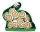 Bonboniéra v krabičce tvaru Velikonočního zajíčka. Uvnitř bonboniéry najde obdarovaný plně potištěnou kartu s vaším reklamním sdělením, pozdravem nebo jakýmkoli jiným poselstvím a k tomu mix pralinek různých příchutí nebo samostatně balené čokoládové penízky. Výběr je jen na vás! Penízky vyrobené z kvalitní mléčné čokolády, pralinky z čokolády mléčné, hořké nebo bílé, mohou obsahovat alkohol.