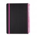 Deluxe A5 notebook with colored spiral ring and elastic band. With 80 sheets/160 white lined pages of 70g/m2 inside.