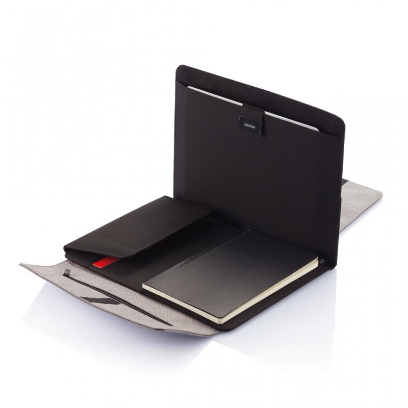 Ta nejkompaktnější varianta kanceláře. Portolio slouží pochopitelně jako stojánek na tablet, ale také po otevření lze spatřit, jak do něj vše skvěle pasuje. Obsahuje totiž řadu chytrých přihrádek, do kteých lze umísit vše potřebné a mít tak stále to nejdůležitější po ruce. Ideální reklamní předmět pro vaše obchodní partnery nebo zaměstnance, kteří jsou hodně na cestách nebo pracují mimo kancelář. Neméně důležité je také to, že portfolio je vyrobeno z rPET (recyklovaných PET lahví) S vaším logem skvělý propagační dárek vaší společnosti. Velikost na tablety velikost 9-10".