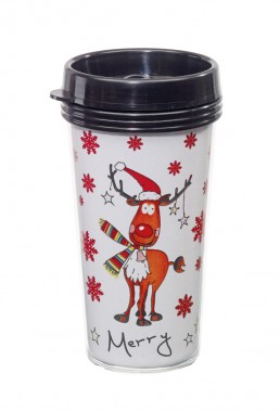 Dvouplášťová termoska "Rudy" s bezpečným šroubovacím víkem a s integrovaným otvorem na pití. S odšroubovatelným dnem. Obsah: cca 450 ml.