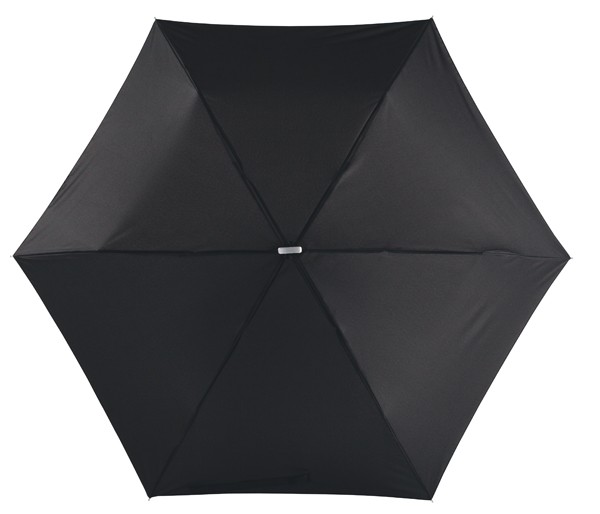 Hliníkový skládací deštník "Flat"s hmotností pouze 164 g. Ultralehký mini skládací deštník. Hliníková hřídel s hliníkovými žebry. Délka žeber:49 cm. Sklolaminátové konce s kovovými hroty. Rukojeť stříbrné barvy. Potah děstníku je vyroben z polyesteru.