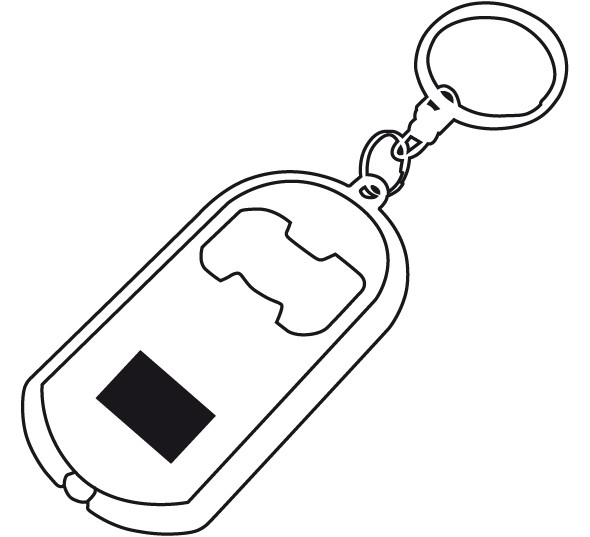 Klíčenka "Open light" s LED světlem, otvírákem a kroužkem na klíče. Ideální drobný reklamní předmět s více funkcemi.