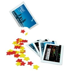 Není nic příjemnějšího než koupel se žlutými a červenými konfetami ve tvaru hvězdiček, které voní po vanilce. Vaše reklamní sdělení se bude vyjímat přímo na obalu. Minimální hmotnost, malé rozměry a nízká cena dělají z balíčku ideální direct mailový dárek.