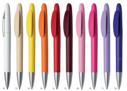 Plně barevné kuličkové pero s matným povrchem a stříbrnou špičkou. Potisk na klip, na těle propisky buď oboustranně tamponovým tiskem nebo po celém obvodu sítotiskem.
