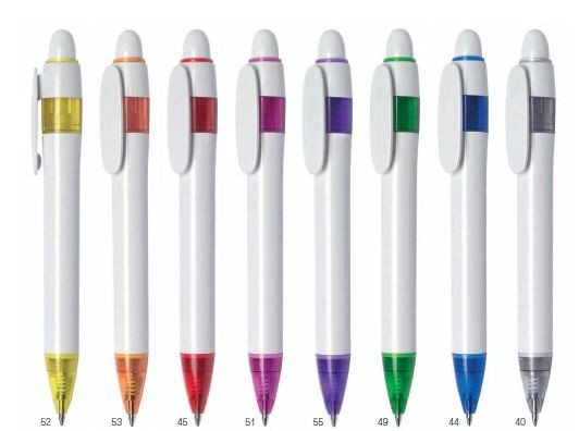 Kuličkové pero, celá konstukce v plné barvě. Potisk na klip, na těle propisky buď oboustranně tamponovým tiskem nebo po celém obvodu sítotiskem.