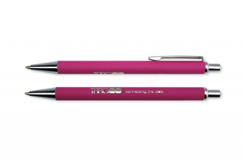 Kuličkové pero z kvalitního kovu s pogumovaným povrchem, který zaručuje vysoký komfort při psaní. Vaše logo bude naneseno speciální technologií, která mu dodá luxusní chromový vzhled. Inkoust modrý nebo černý.