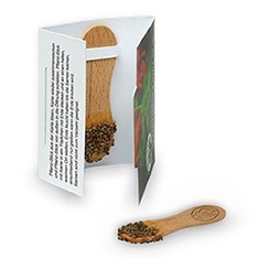 Praktická květinová tyčka, již žádné špinavé ruce od hlíny! Na dřevěné tyčce, která je vložena do papírové karty, jsou voskem připevněna semínka vámi vybrané rostliny. Tyčku stačí jednoduše vysunout z karty, zasadit do země a zalít. Za několik dní bude tyčka obklopena mladým rostlinkami, přičemž karta s vaším reklamním sdělením zůstane stále dobře viditelná. Tomu se říká zelená reklama! Na výběr jsou semena kopretiny, řeřichy, papriky, bazalky, perského jetele, pomněnky, heřmánku, kopru a kmínu. Možnost gravírování na tyčku skýtá další reklamní prostor, ideální pro firemní logo.