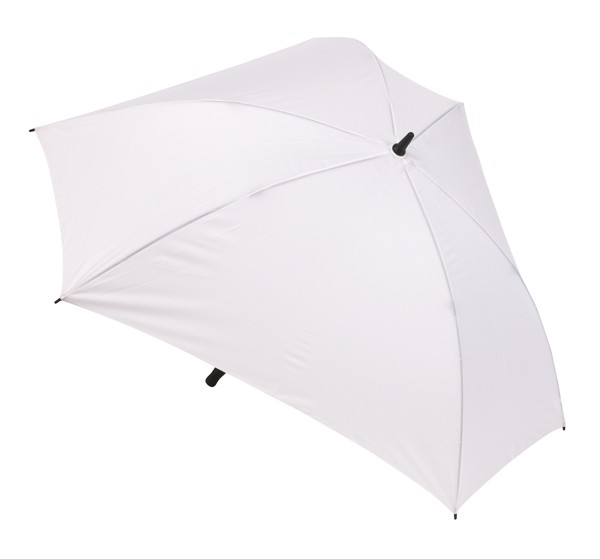 Laminátový deštník "Triangle" ve tvaru trojúhelníku s plastovými koncovkami, pogumovanou černou rukojetí. Netradiční tvar deštníku zaručuje velmi dobrou prezentaci vaší společnosti. Délka žeber: 72 cm. Zapínání na suchý zip.
