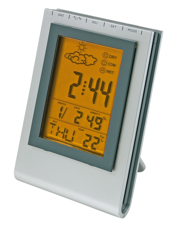 Multifunkční meteorologická stanice"Pluto" s budíkem a datem je skvělým reklamním prezentem. vaši klienti a obchodní partněři mohou zvolit oblečení dle této meteostanice a již je nic nezaskočí.