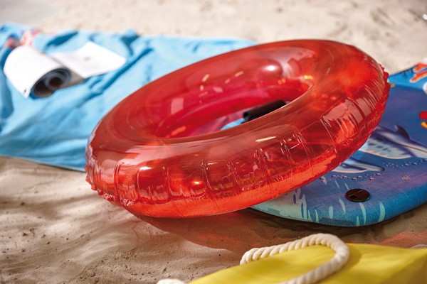Nafukovací kruh s penovými kuličkami uvnitř.