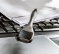 Otvírač na dopisy "Dark Line" z kartáčovaného kovu, s velkou plochou pro vaše logo.