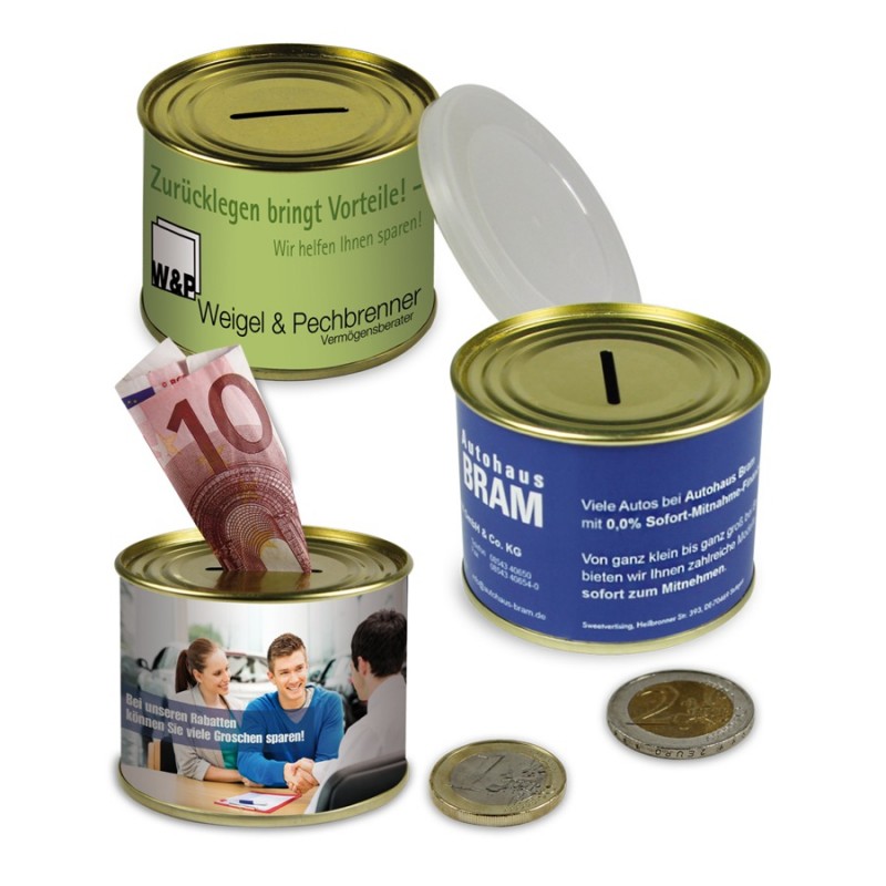 Konečně začátek opravdových úspor! K napořeným penězům se tentokrát lze dostat až s pomocí otevíráku na konzervy a to už vyžaduje dávku rozhodnutí! Darujte svým klientům nebo zaměstnancům dárek s takovou symbolikou, vaší výhodou je velký prostor pro reklamní sdělení, který zůstává klientům na očích po celou obu spoření.