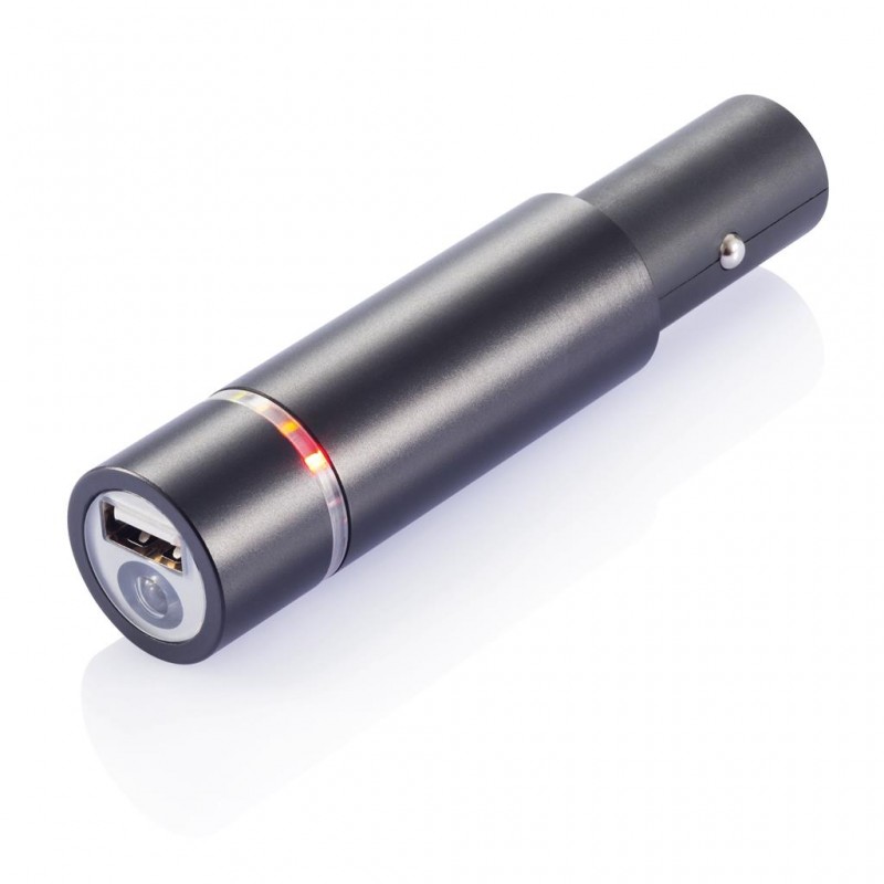 | Hliníkové pouzdro s inegrovanou 1400mAh baterií pro dobíjení mobilních telefonů a svítilna s různými světelnými funkcemi. Vnitřní baterie se nabíjí v autě a potom se může vzít kamkoliv je potřeba jako záložní zdroj energie. |