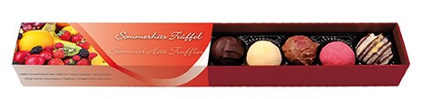 Lahodné pralinky v boxu štafeta, jako stvořené k tomu se o sladkou radost podělit. Vyberte si ze tří variant tu, která bude vaší společnost reprezentovat nejlépe. K dispozici máte balení pralinek s vaječným likérem, sadu "letních chutí" s alkoholem nebo box s nealkoholickými pralinkami.