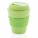 Stop single use! Bring your own cup and join the reuse revolution so you can contribute to a disposable free world. These lightweight and durable cups are perfectly suited to take your coffee on the go. These cups are reusable and made of 100% recyclable friendly PP material. The cups have a screw lid and a silicon sleeve. 100 degree Celsius food safe approved. Dishwasher and microwave safe. Content: 350ml.