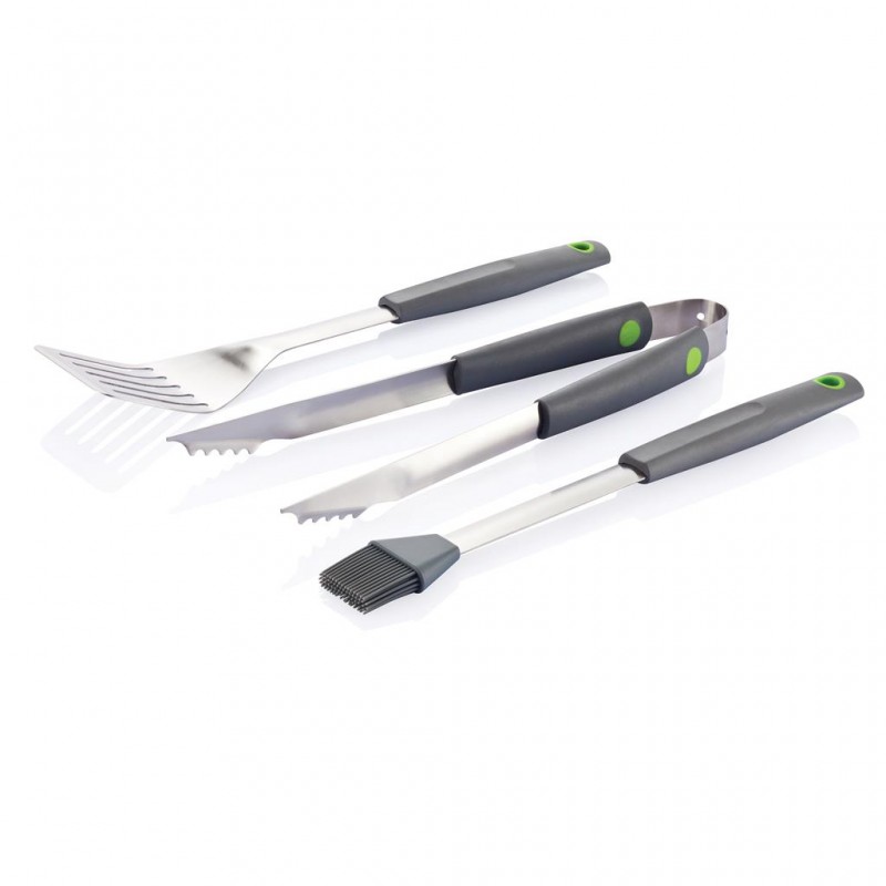 Sada na BBQ v trendy designu. Základ každého podařeného díla je kvalitní nářadí! A o jídle to platí dvojnásob. Sada obsahuje obracečku, silikonový štětec a kleště. Vyrobeno z nerez oceli, úchytky z TPR.