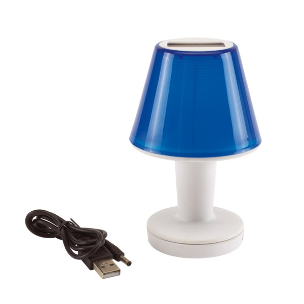 Solární lampa "Illumination'"s bílým podstavcem a barevným stínítkem s vaším logem poskytne dokonalé osvětlení. Horní solární panel. Lze nabíjet pomocí USB kabelu (o délce 62 cm). Včetně dobíjecí baterie. Baleno v dárkové krabičce.