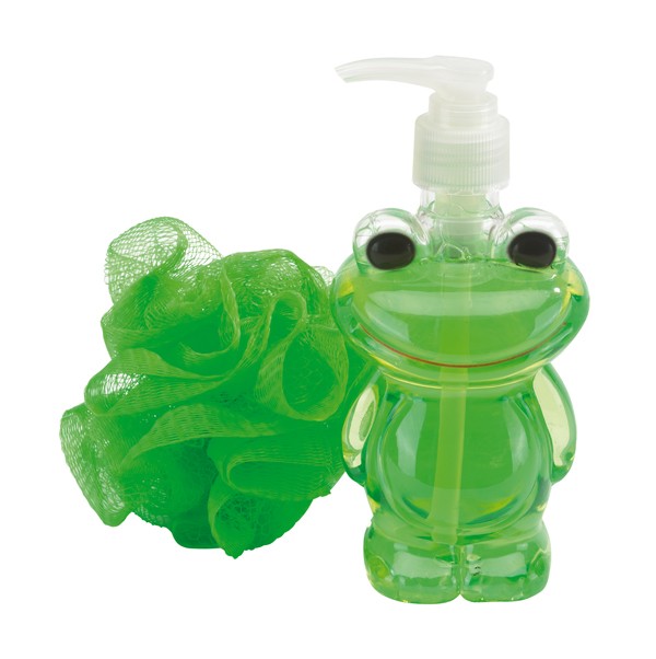 Sprchový gel pro děti "Frog" s dávkovačem a mycí houbou. Obsah cca 270 ml.