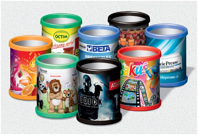 Stojan na tužky s plnobarevným potiskem, lentikulární povrch. Stojánek lze využít také další kancelářské pomůcky, např. sponky nebo připínáčky. Věnujte svým klientům nebo obchodním partnerům efektní a především praktický dárek, který bude účinně reprezentovat vaši značku. Vybrat si můžete barvu plastových dílů (dno a vrchní zpevňovací kroužek) a samozřejmě také design. Dodáváno v rozloženém stavu, velmi snadná montáž.