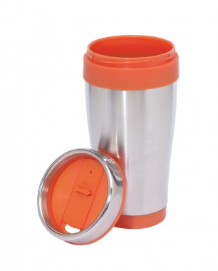 Dvouplášťový termohrnek "Lungo"z nerezové oceli na vnější straně a plast z vnitřní strany. Se šroubovacím víčkem a integrovaným otvorem na pití. Objem cca 400 ml.