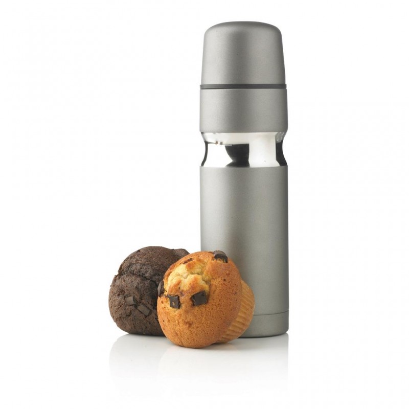 Praktická termoska v moderním designu, která bude Vašim klientům dlouho věrně sloužit a přitom propagovat logo vaší společnosti. Vyrobená ze 2 stěn nerez oceli oddělených vakuem, díky tomu spolehlivě udrží správnou teplotu nápojů. Stlačovací uzávěr pro jednoduché ovládání, včetně integrovaného šálku. Objem 500 ml.